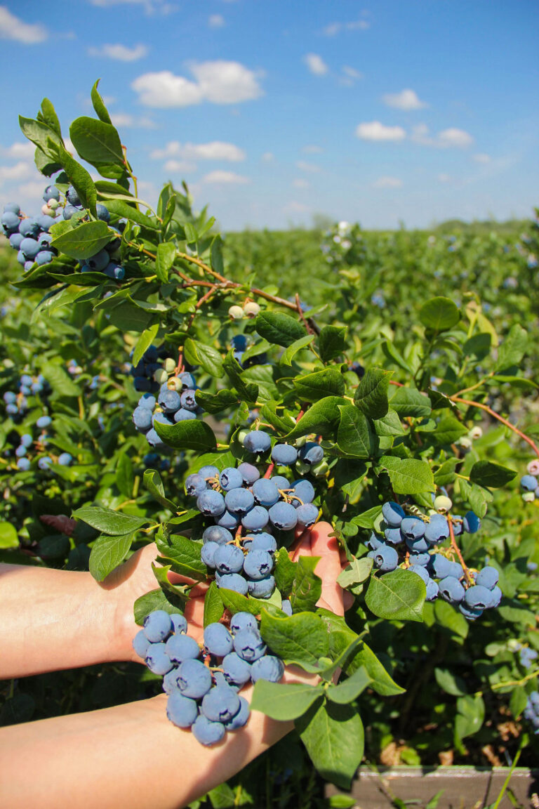 Kiedy nasz trud zostanie wynagrodzony i borówki będą dostatecznie dojrzałe, możemy przystąpić do zbiorów. Termin zbiorów uzależniony jest od wielu czynników – uśredniając przypada na ok. 2,5 miesiąca po okresie kwitnienia.
